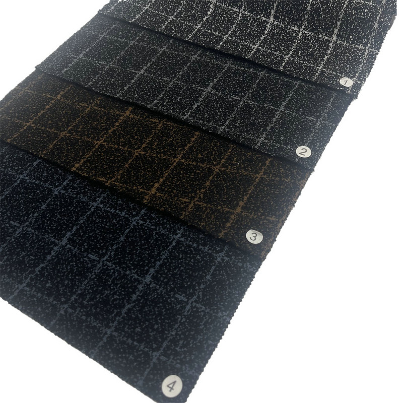Este tecido, artigo 182808-1, é um tecido tricotado destinado à fabricação de blazers. É construído a partir de uma mistura de fibras de 65% poliéster, 27% náilon, 6% acrílico e 2% lã, com massa por unidade de área de 820g/m2. A superfície integra um padrão combinado de xadrez e pontos formado durante o processo de tricô. Essa composição específica de fibras cria características complementares: o poliéster proporciona estabilidade estrutural, o náilon aumenta a durabilidade, o acrílico contribui para o loft e a lã influencia o toque do tecido. O peso substancial e a construção da malha contribuem para as propriedades de caimento e isolamento do tecido, tornando-o aplicável para peças de vestuário estruturadas, como blazers.