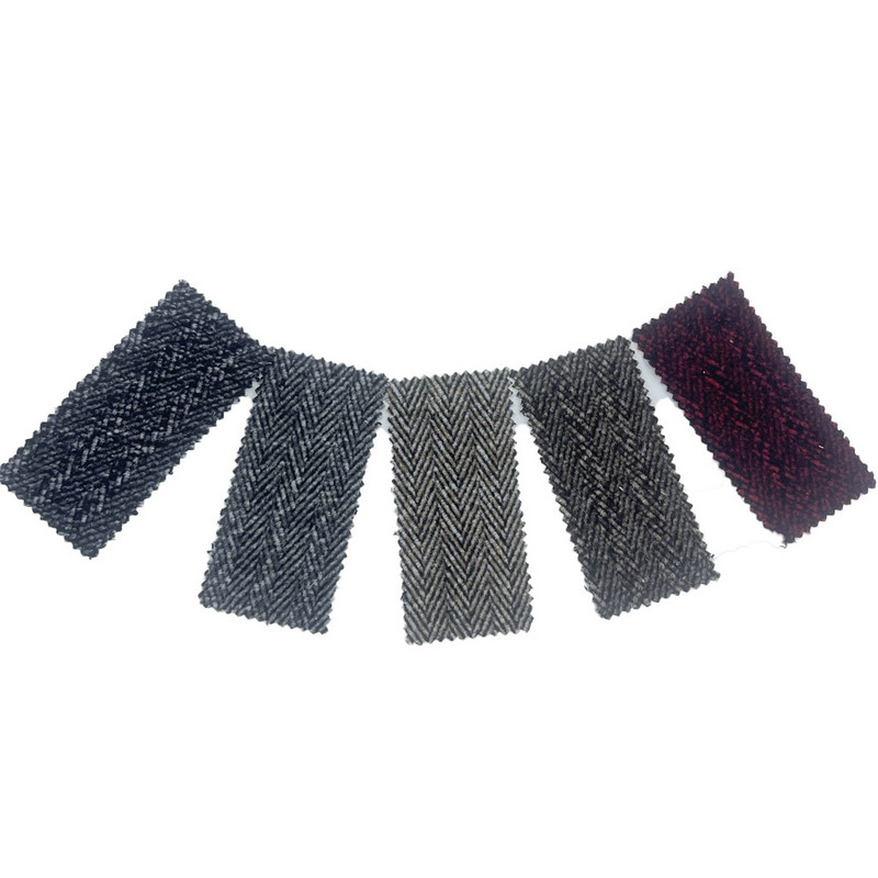 Este tecido, designado artigo 4298, é um tecido tweed composto por 10% de lã e 90% de outras fibras. Com massa por unidade de área de 520 g/m2, apresenta construção de peso médio a pesado. A superfície preta e vermelha apresenta um padrão em espinha criado através de uma técnica de tecelagem específica. Um acabamento escovado foi aplicado para levantar as fibras e criar uma textura de superfície suavizada. Este processo melhora as propriedades táteis do tecido, mantendo a definição estrutural dos motivos em forma de V. A composição da mistura de lã contribui para a regulação térmica e resiliência do material. Estas características técnicas tornam este tweed escovado aplicável a peças de vestuário onde é necessária clareza visual do padrão e conforto superficial.