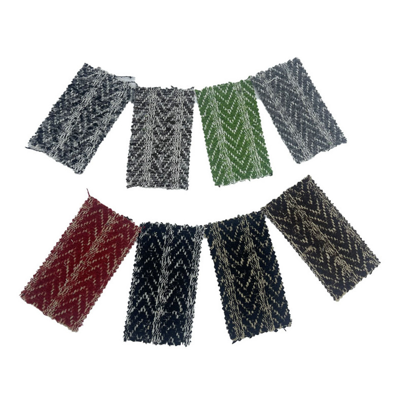 Este tecido, designado artigo 3467, é um tecido jacquard tweed composto por 10% de lã e 90% de outras fibras. Com massa por unidade de área de 550 g/m2, apresenta construção pesada. A superfície combina um padrão de espinha de peixe com elementos listrados através do processo de tecelagem jacquard. Um acabamento escovado foi aplicado para criar uma textura semelhante a um ursinho em relevo, formando uma pilha superficial densa que altera as propriedades visuais e táteis. Esta técnica mantém a precisão geométrica dos padrões tecidos ao mesmo tempo que adiciona uma qualidade tridimensional. A composição da mistura de lã contribui para a resiliência e desempenho térmico do tecido. Estas características técnicas tornam este tecido aplicável para projetos que exigem definição padronizada e textura de superfície distinta.