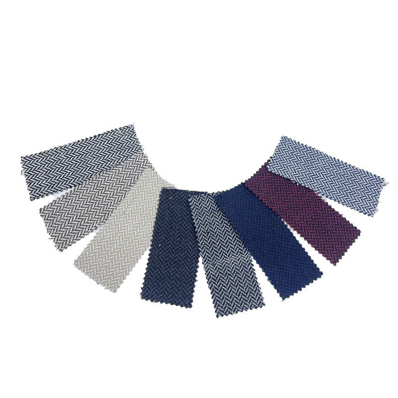 Este tecido, designado como artigo 3947, é um tecido de tweed jacquard composto 100% por outras fibras. Com massa por unidade de área de 480 g/m2, apresenta construção de peso médio. A superfície azul escura combina um padrão de espinha de peixe com uma técnica de relevo, criando uma textura em relevo em áreas específicas dos motivos em forma de V. Este processo de fabricação melhora a qualidade tridimensional da estrutura tecida, mantendo a integridade do desenho geométrico. As especificações técnicas resultam num tecido com pronunciada dimensionalidade superficial e estabilidade estrutural. Essas características tornam este tweed tecido jacquard aplicável à fabricação de jaquetas onde o interesse textural e a definição do padrão são necessários.
