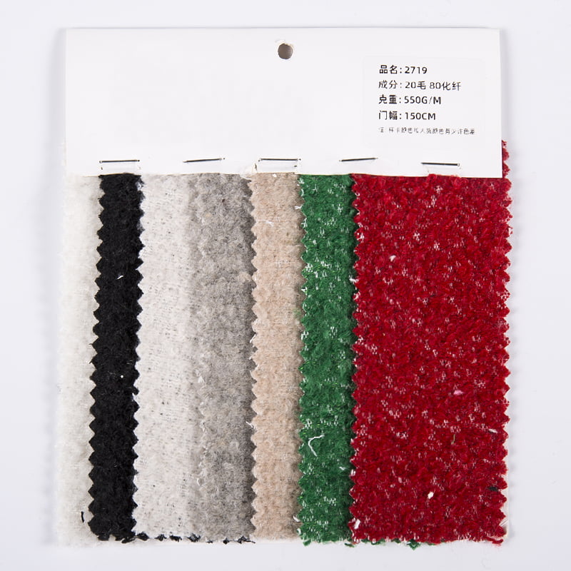 O tecido Multicolors Berber Fleece Tweed para roupas femininas 2719 é cuidadosamente misturado com 20% de lã de alta qualidade e 80% de fibra química de alto desempenho. Ele não apenas retém o calor natural e o toque macio da lã, mas também confere plena resistência ao desgaste, ao enrugamento e às características de fácil cuidado da fibra química. A adição de lã permite que o tecido forneça calor suficiente nas estações frias, enquanto a mistura de fibras químicas garante a rigidez e durabilidade do tecido, permitindo que cada roupa feminina mantenha sua forma e cor por muito tempo. A inspiração do design do tweed de lã berbere multicolorido vem da colisão da cultura tradicional e moderna. A combinação única de cores e os padrões ásperos estão interligados para formar um impacto visual único. Quer sejam cores brilhantes e contrastantes ou cores adjacentes discretas e calmas, elas podem ser perfeitamente apresentadas neste tecido. Este design colorido não só enriquece o nível visual das roupas femininas, mas também traz mais opções de combinação e expressão de personalidade para quem usa. Em termos de tecnologia de produção, usamos tecnologia têxtil avançada para garantir que cada centímetro do tecido seja uniforme e delicado e confortável.