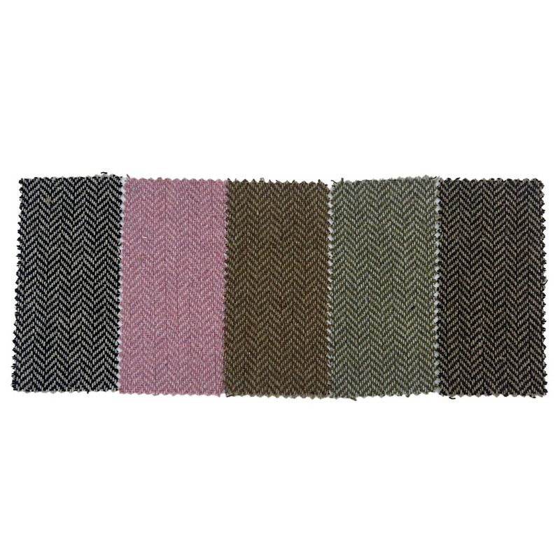 Este tecido, designado artigo 3532, é um tecido jacquard composto por 20% de lã e 80% de outras fibras. Com massa por unidade de área de 500 g/m2, apresenta construção de peso médio a pesado. A superfície rosa apresenta um padrão de espinha de peixe criado através do processo de tecelagem jacquard, que forma motivos precisos em forma de V em todo o tecido. Esta técnica produz uma textura direcional consistente com repetição geométrica definida. A composição da mistura de lã contribui para as propriedades térmicas do tecido e para a retenção da forma. Essas características técnicas resultam em um material com densidade estrutural e clareza de estampa, tornando-o aplicável em calças onde são necessárias definição visual e estabilidade dimensional.