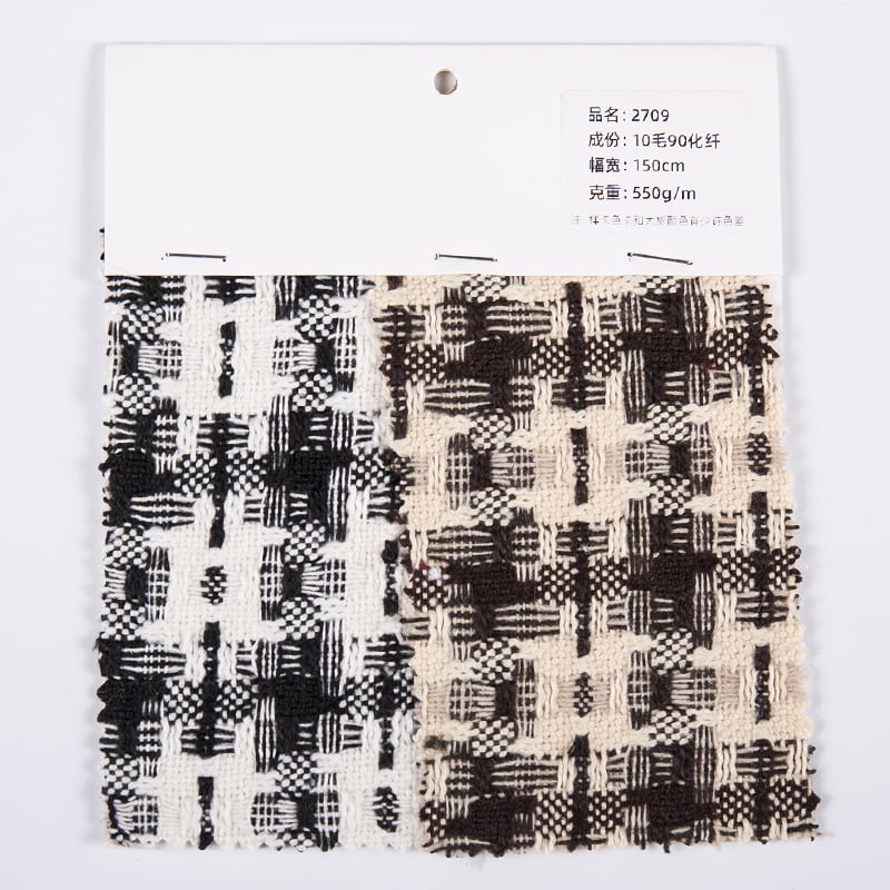 O Tecido Fleece Jacquard Xadrez 2709 é um tecido de alta qualidade especialmente desenvolvido para o mercado têxtil moderno. Esses dois tecidos usam tecnologia jacquard avançada para integrar de maneira inteligente padrões xadrez finos à estrutura do tecido, o que não apenas melhora as camadas visuais e a expressão dos detalhes, mas também aprimora significativamente o tecido por meio de técnicas de tecelagem tridimensionais. experiência tátil. Em termos de composição de material, a série 2709 utiliza materiais misturados rigorosamente selecionados para garantir que o desempenho geral do tecido seja ideal. Especificamente, ambos os tecidos contêm 10% de lã natural. A lã é famosa por sua boa retenção de calor, respirabilidade e toque suave à pele, permitindo que os tecidos permaneçam confortáveis e quentes nas estações frias. Ao mesmo tempo, as propriedades naturais da lã também conferem ao tecido uma certa função de absorção de umidade e transpiração, melhorando o conforto de uso. Para melhorar ainda mais a durabilidade e praticidade do tecido, também são adicionados componentes de 90% de fibras químicas. As fibras químicas tornaram-se uma parte indispensável dos têxteis modernos devido à sua elevada resistência, resistência ao desgaste e facilidade de manutenção. A adição desses componentes de fibra química não só aumenta a resistência ao enrugamento do tecido, permitindo que as roupas ou decorações permaneçam lisas e bonitas durante o uso a longo prazo, mas também melhora muito a resistência ao rasgo e a durabilidade do tecido, ampliando o uso de o produto. vida.