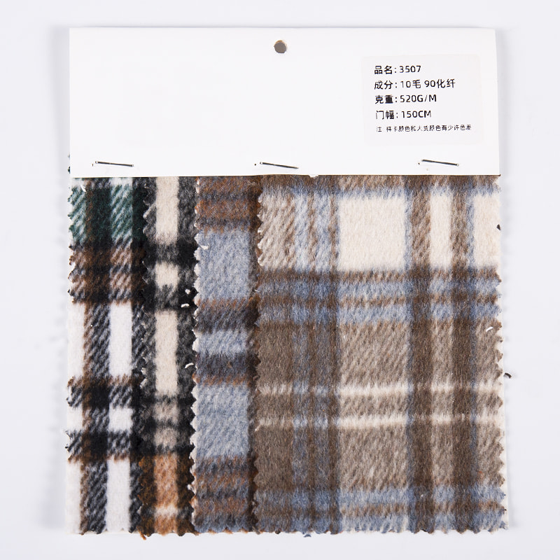 O tecido de tweed xadrez de lã extravagante feito com escova 3507 é um tecido de tweed xadrez cuidadosamente projetado, que se caracteriza pela combinação engenhosa de fios sofisticados de lã e fibra química de alto desempenho, alcançando dupla otimização de materiais e processos. Especificamente, o tecido é misturado com 10% de lã selecionada e 90% de fibra química de alta qualidade. Através de tecnologia têxtil avançada, garante que o tecido mantenha as propriedades naturais da lã e ao mesmo tempo tenha o desempenho superior da fibra química. O uso de fios extravagantes de lã traz um efeito visual único e uma experiência tátil ao tecido 3507. Por ser uma fibra natural, a lã possui boa retenção de calor, respirabilidade e absorção de umidade, o que torna o tecido confortável e quente nas estações frias. A introdução do fio sofisticado aprimora as camadas e o sentido tridimensional do tecido por meio da forma mutável do fio e da combinação de cores, tornando o design do pincel xadrez mais distinto e variado. A adição de fibra química melhora ainda mais o desempenho prático do tecido 3507. Com sua boa resistência ao desgaste, resistência a rugas e fácil manutenção, a fibra química garante que o tecido possa permanecer plano e nítido durante o uso a longo prazo. Ao mesmo tempo, a recuperação elástica da fibra química também faz com que o tecido se ajuste melhor ao corpo e tenha menos probabilidade de se deformar durante o uso ou uso. O desenho da treliça em pincel é outro destaque do tecido 3507. Através de uma tecnologia de tecelagem precisa, fios de diferentes cores ou materiais são entrelaçados em um padrão de treliça distinto, simulando um efeito de textura semelhante a um pincel. Este design não só aumenta o impacto visual do tecido, mas também dá ao tecido conotações culturais e elementos de moda mais ricos.
